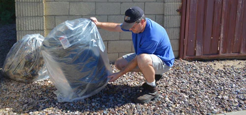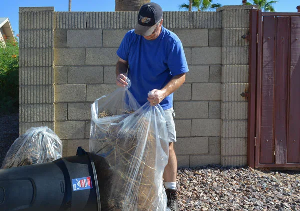 It allowed me to fill the bags without ripping them up too much. Perfect! The City of Phoenix, bulk trash collectors will pick these bags up with their claw machine, no one will get poked.