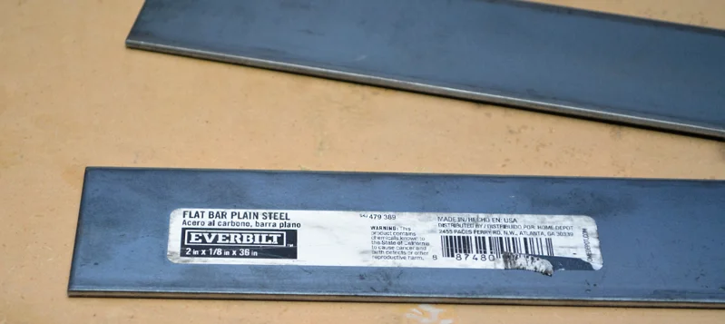 All shapes and sizes of metal stock can be picked up from the hardware section of a big box home center. I selected 2" wide by 1/8" thick flat bar, plain steel. I bought a couple 3 foot-long pieces for about 7 bucks a piece.