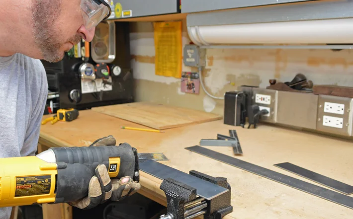 Taking it nice and easy, at a low angle, a reciprocating saw can cut a pretty straight line. Fine tooth, bi-metal blades leave a decent finished cut, but you still have to be careful handling a fresh-cut edge bare handed. There are often sharp burs that won’t hesitate for a second before rudely trenching a nice, bleeding gouge through your favorite pencil holding finger.
