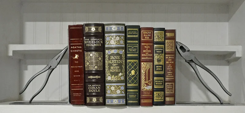I popped them up on the bookshelf with some leather bound classics. They look good, but I think I’m going to take them to work and put them in my office to support some more construction-ey oriented books. I think hand tools may be a little lowbrow for the likes of Doyle, Austin, and James.