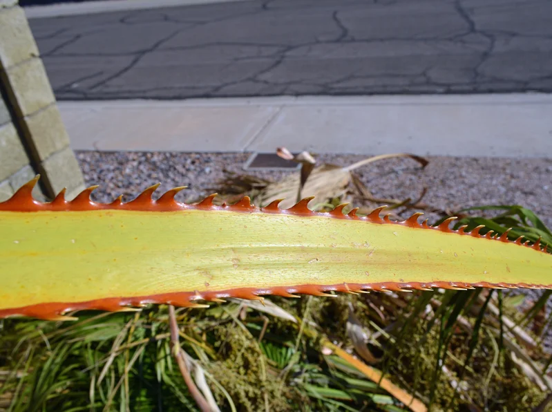 All was going well. I attacked the last of the medium size palms, before I'd have to switch back to the unwieldy pole saw. It still wasn't over 100 degrees yet. Life was good.